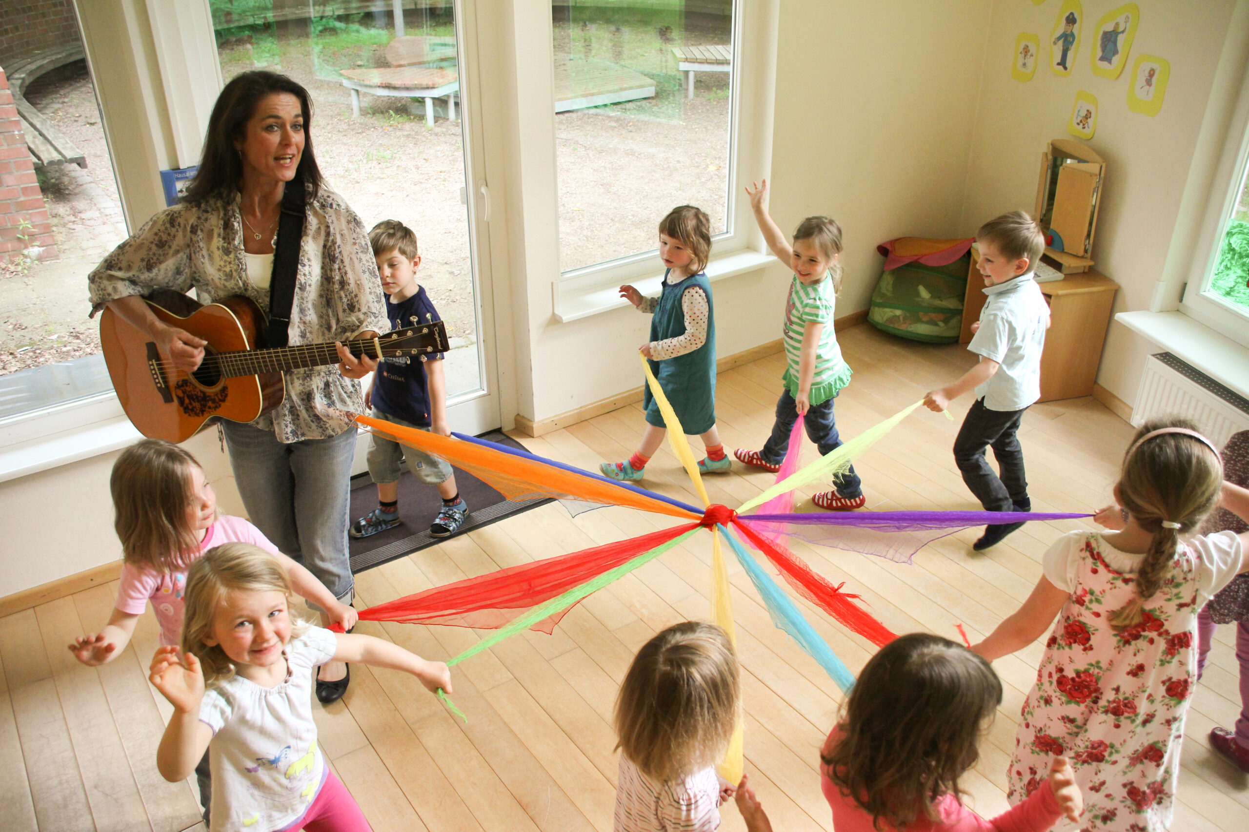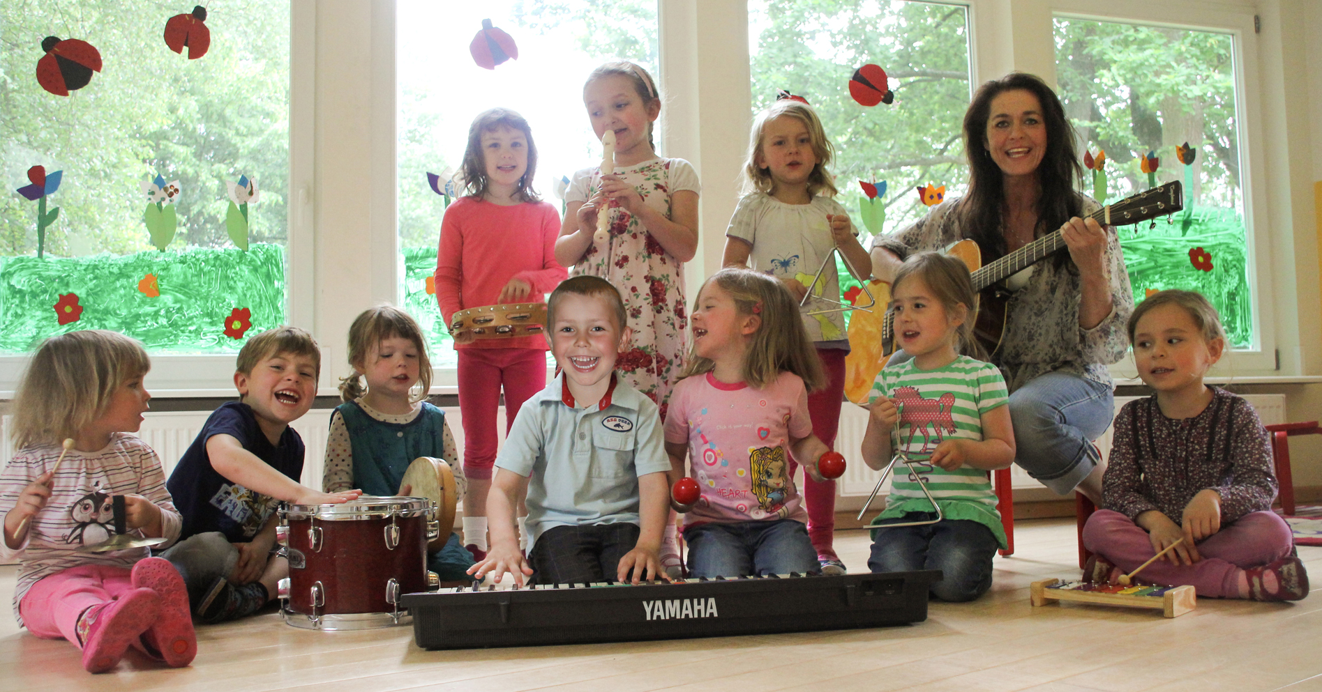 Im Mittelpunkt stehen die Entwicklungen der Stimme und Sprache, des Gehörs sowie die Entdeckung der Feinmotorik – u.a. durch den Einsatz von Orff-Instrumenten, wie Trommel, Triangel, Zimbel, Tamburin und Klangstab und sogar das Spielen einfacher Melodien auf dem Glockenspiel und leichte Übungen auf Blockflöte und Keyboard.